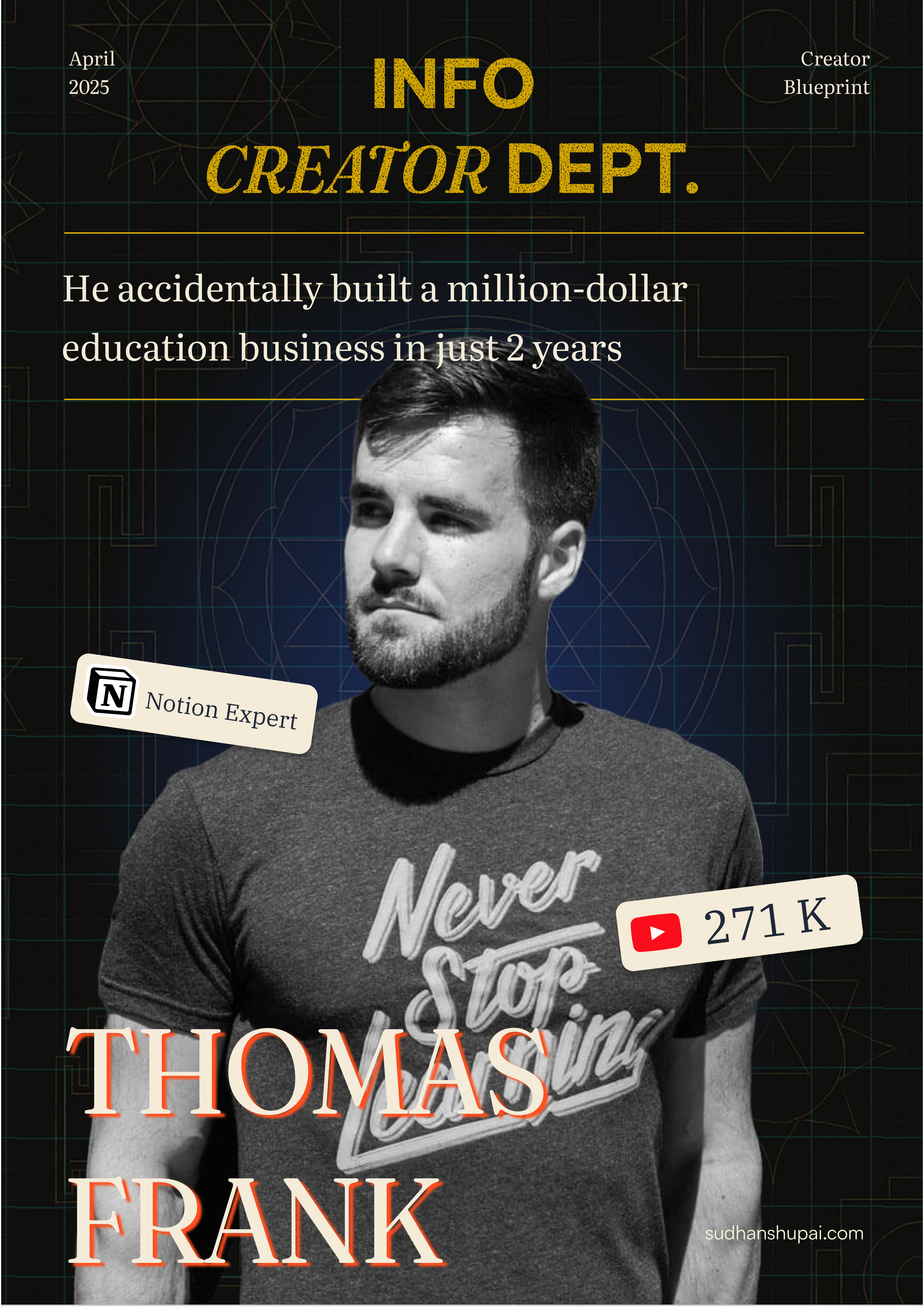 Creator Blueprints. Anne-Laure Le Cunff: The woman who built a 6-fig business by questions and curiosity Katelyn Bourgoin: The Info Creator, Teaching 280k People “Why We Buy” How Thomas Frank accidentally built a million-dollar education business in just 2 years